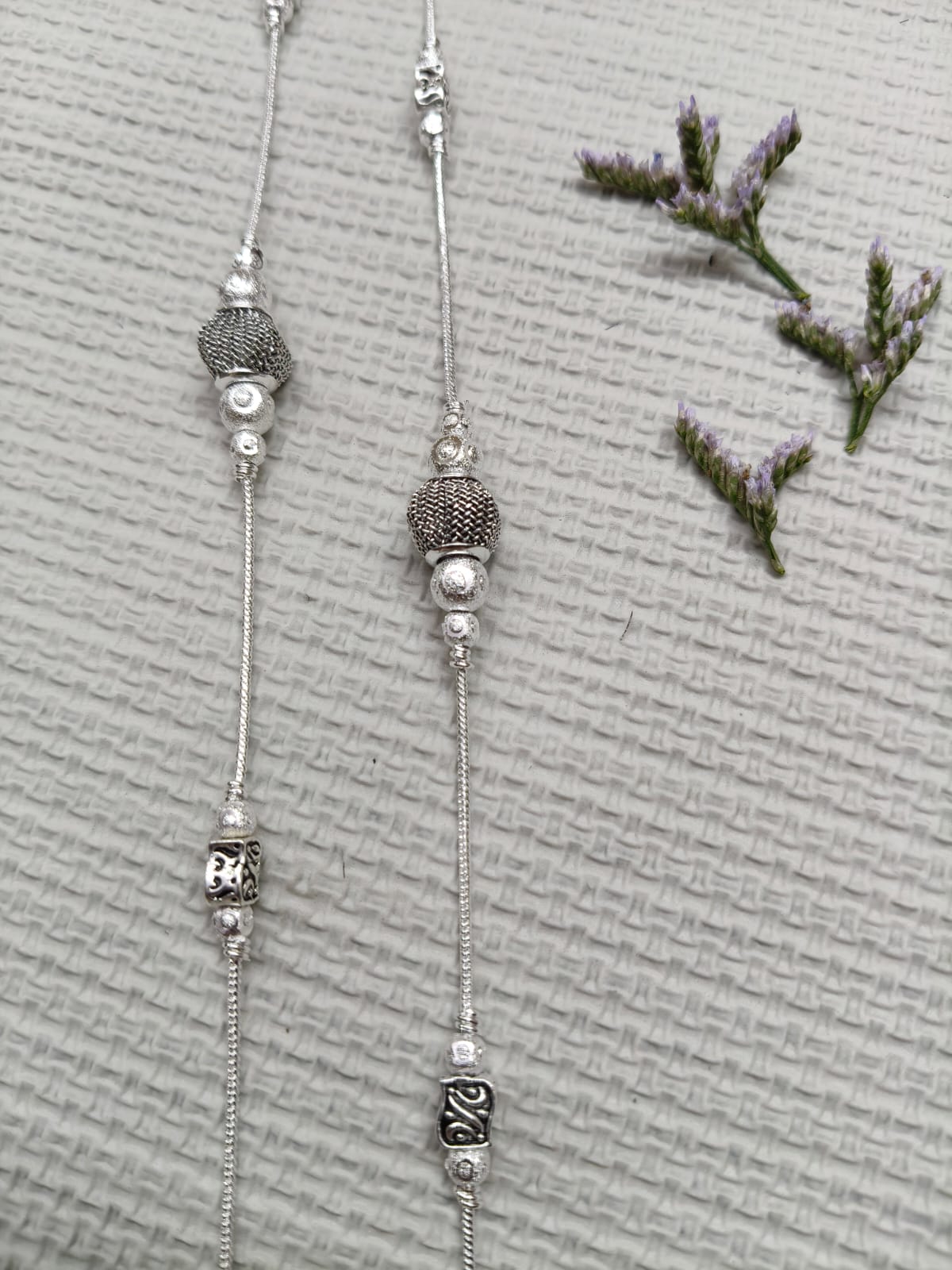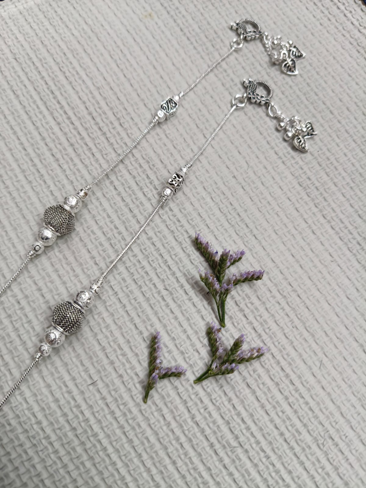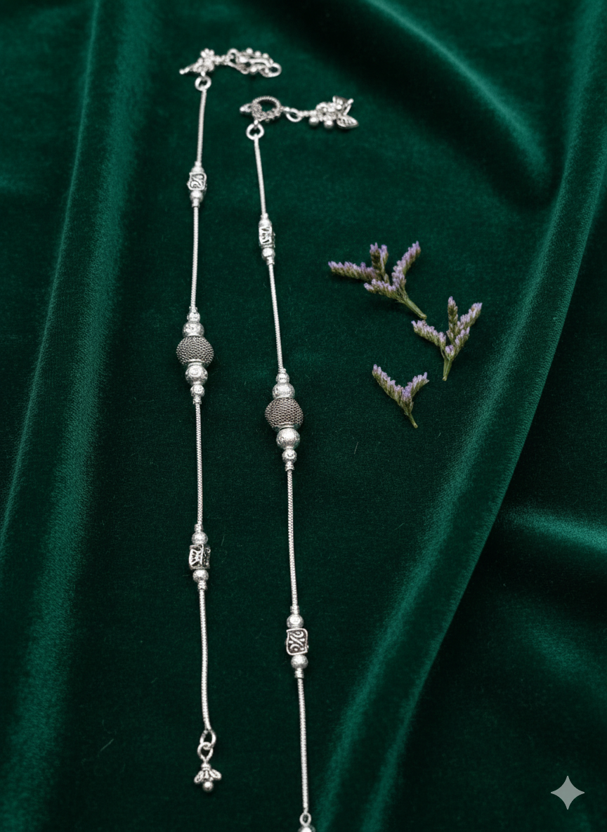 Vibrant Veils Silver Replica Big Beeded Anklet (Pair)